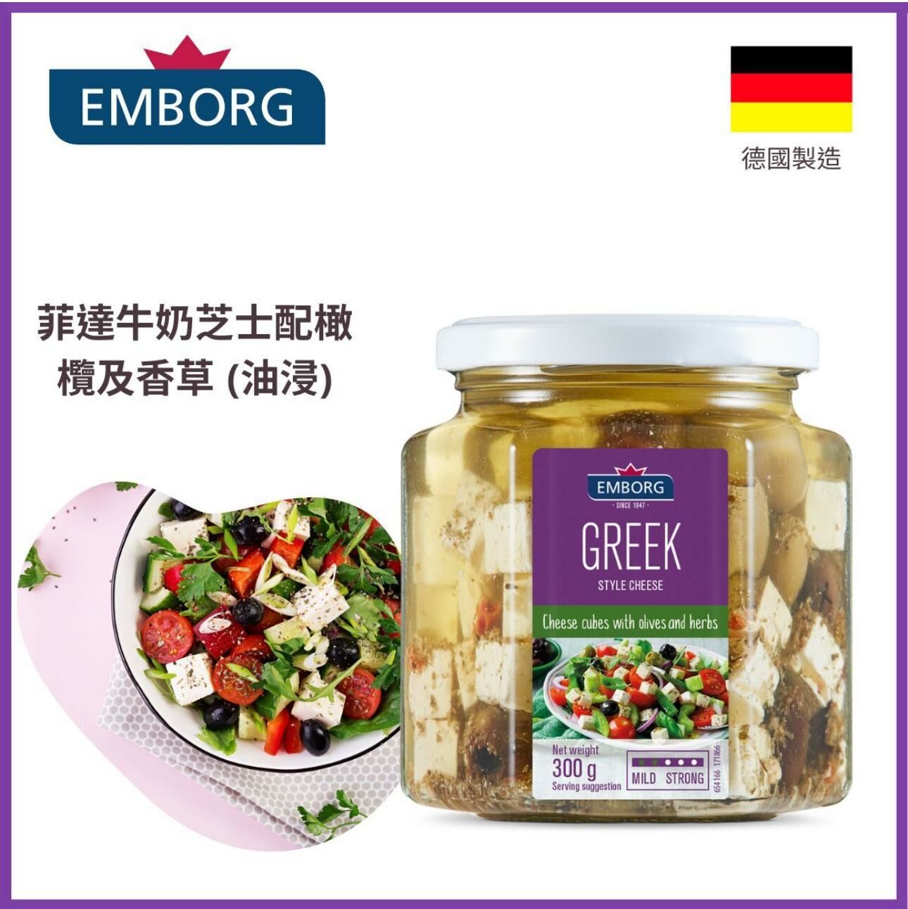 丹麥紫堡牌菲達牛奶芝士配橄欖及香草(油浸)