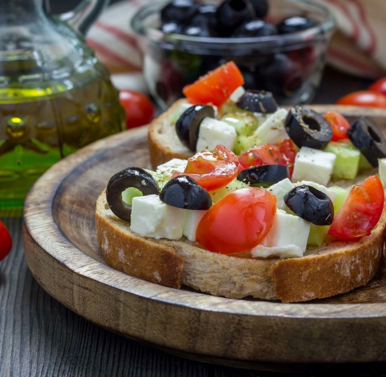 菲達牛奶芝士配上油浸香草及黑及綠橄欖