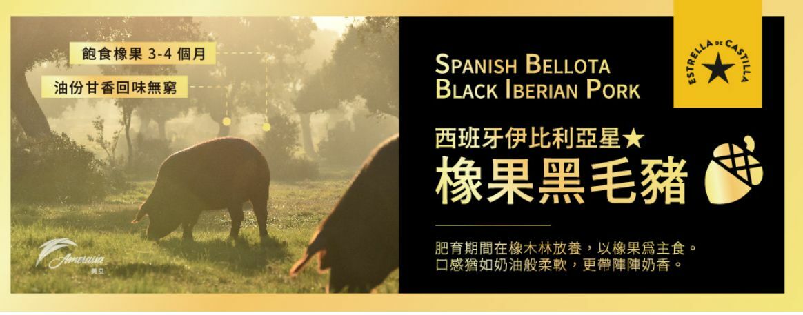 橡果盛產的季節,只有每年的春天,每當到達這個時期,黑毛豬便會被野外放養到橡木林中。在林中飽食橡果5個月,令其肉質口感猶如奶油般柔軟,層次感豐富,入口肉香回味濃郁,更帶陣陣奶香。