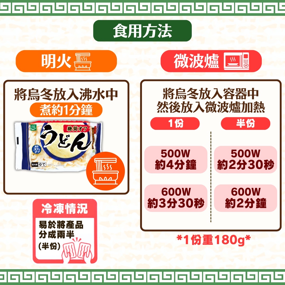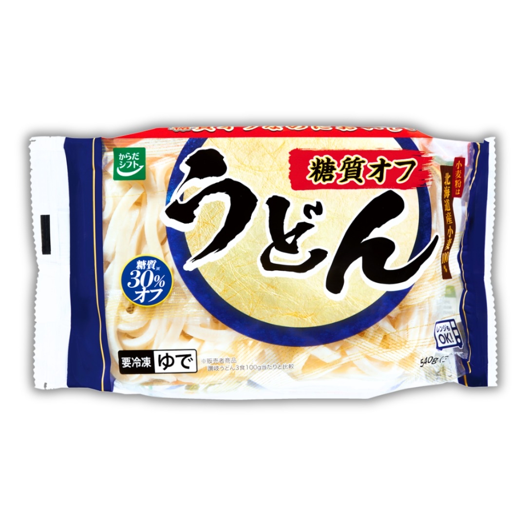 糖質30%OFF減糖系列!!唔想吸收太多糖質但又想食麵類嘅你絕對唔好錯過依款烏冬減糖30%真係點食都唔怕~微波爐4分鐘C!!可使用微波爐~500w叮4分鐘直接食得,唔一定要煲~原材料絕對高級,使用100%北海道小麥!!食落去超有口感勁彈牙