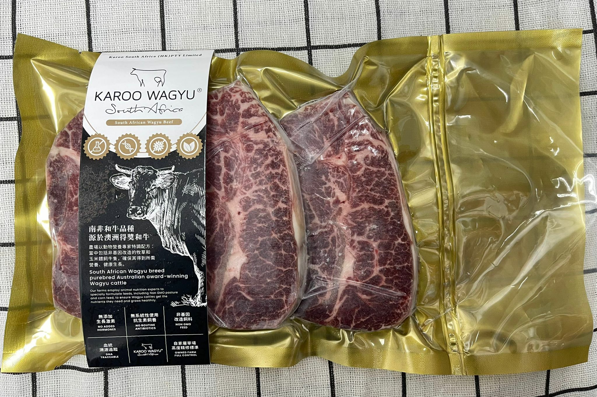 南非和牛品種源於澳洲得獎和牛。農場已用動物營養專家特調配方。當中包括非基因改造的牧草和玉米餵飼,確保牛隻得到所需營養,健康生長。100%有機!