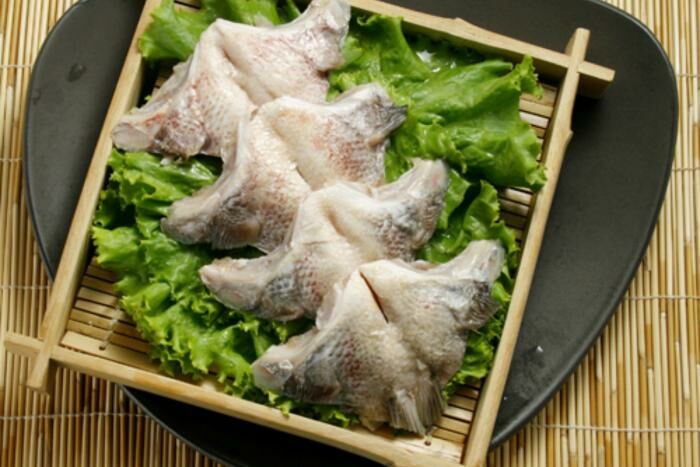 台灣新鮮鯛魚,捕撈後切下魚下巴即刻冷凍保存。魚下巴是指魚的鰓蓋下方至胸鰭基部的。