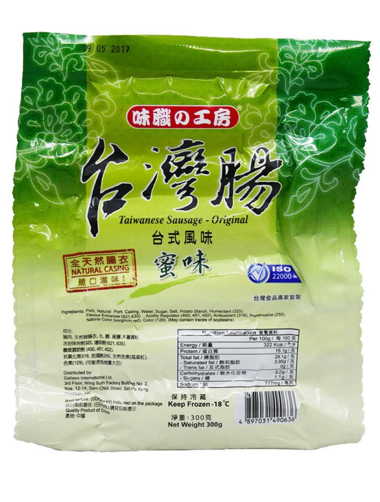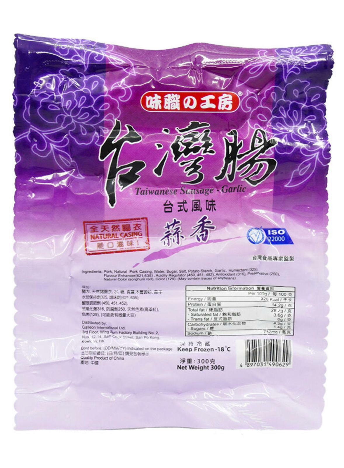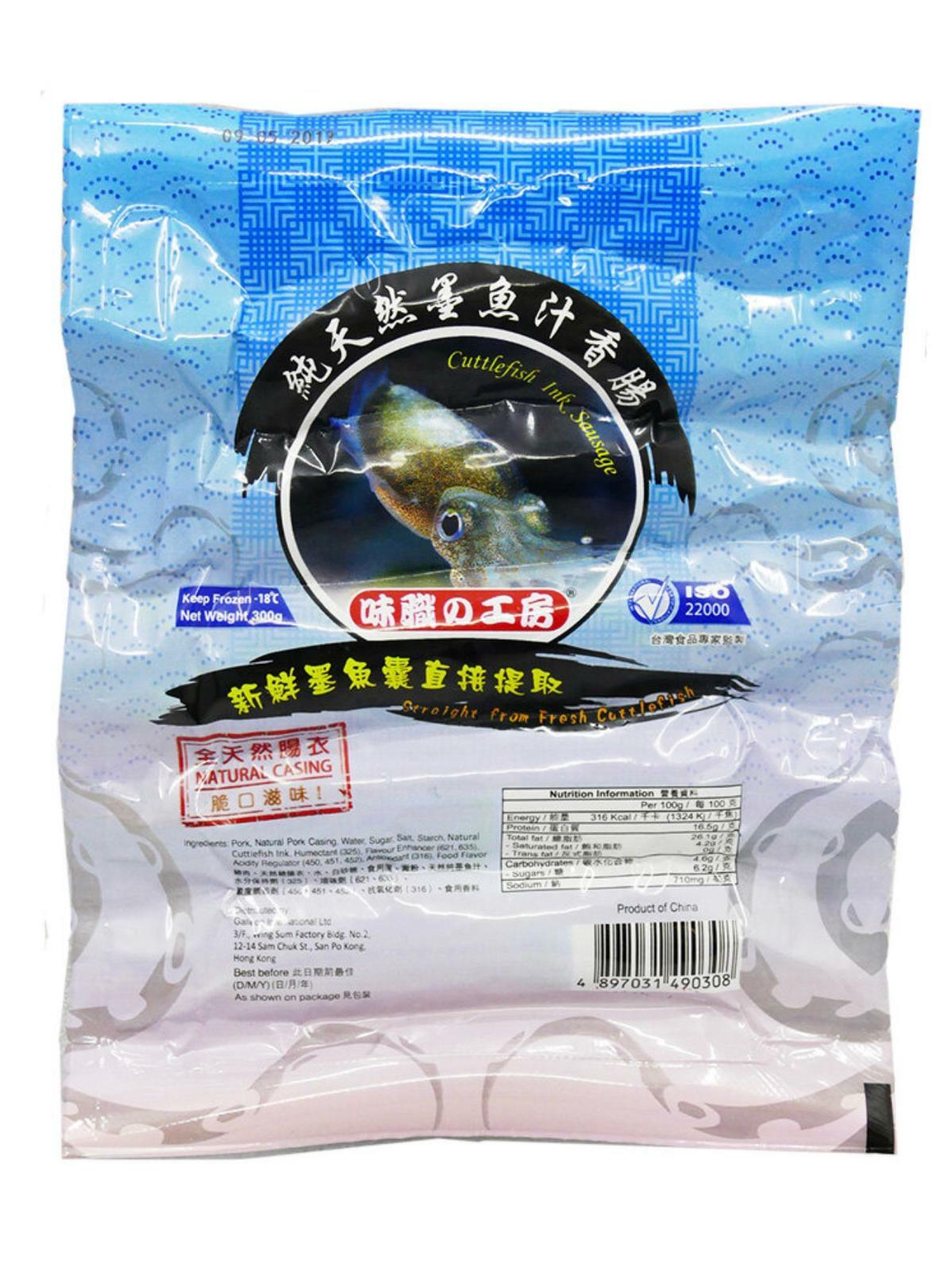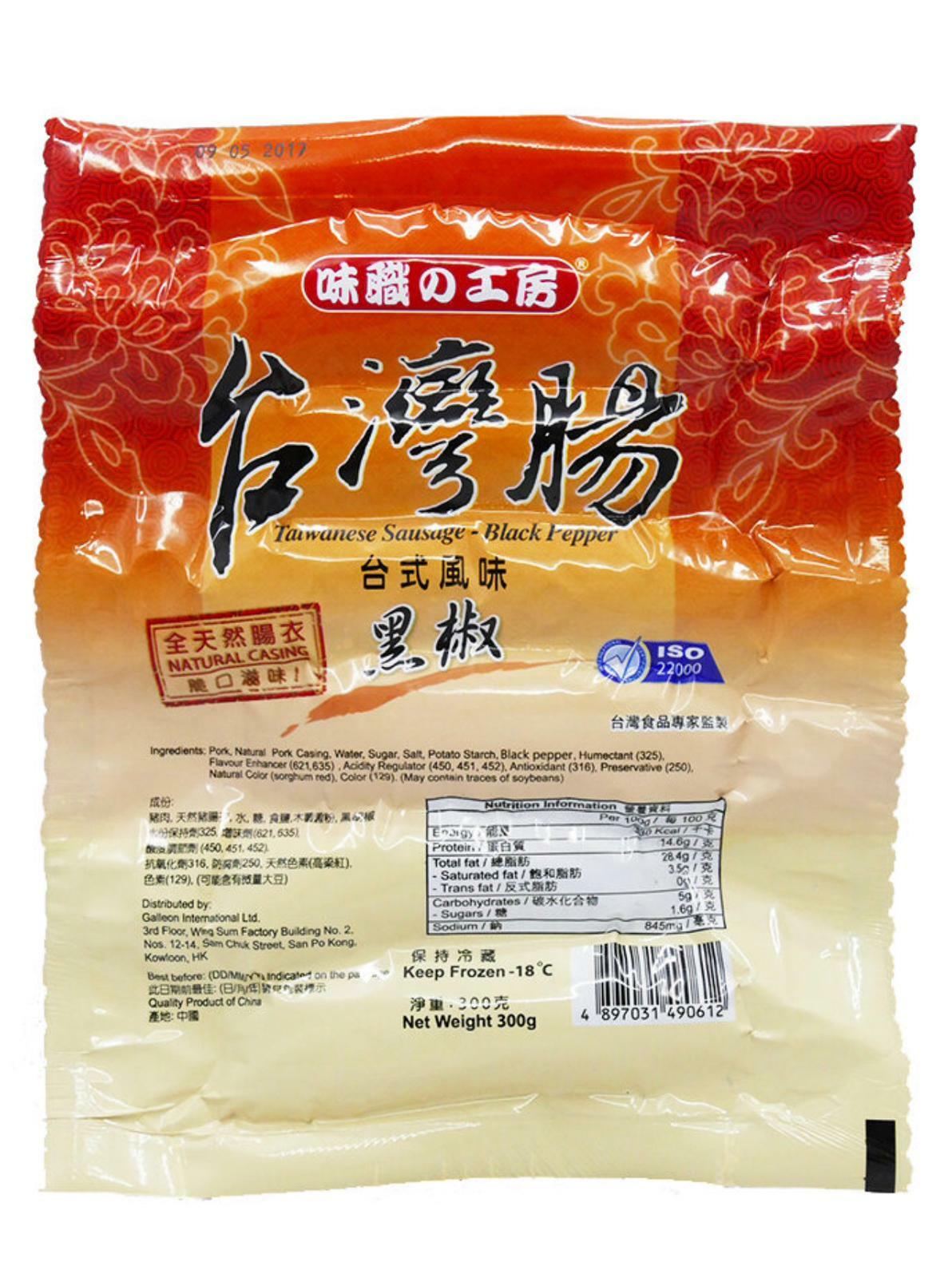 味職の工房台灣腸👍採用天然腸衣👍皮脆肉香👍肉汁豐富有4隻味比大家選擇🌞墨魚汁味:採用新鮮夭然墨魚囊直接提取墨魚汁含有優質的蛋白質、鉀和氨基酸,能夠有效預防動脈硬化、腦中風、高血脂等疾病 墨魚汁的主要成分是黑色素,其中富含岩藻糖的多糖-肽複合體,具有較好的抗腫瘤作用,且無毒副作用,其抗腫瘤作用是由於增強免疫系統功能,特別是增強細胞免疫功能的結果。台灣香腸食品專家監製!HACCP 認証製作嚴謹!皮脆肉香!肉汁够多 !BBQ寵兒!派對小食必然之選🌞黑椒味🌞蜜糖味🌞蒜香味