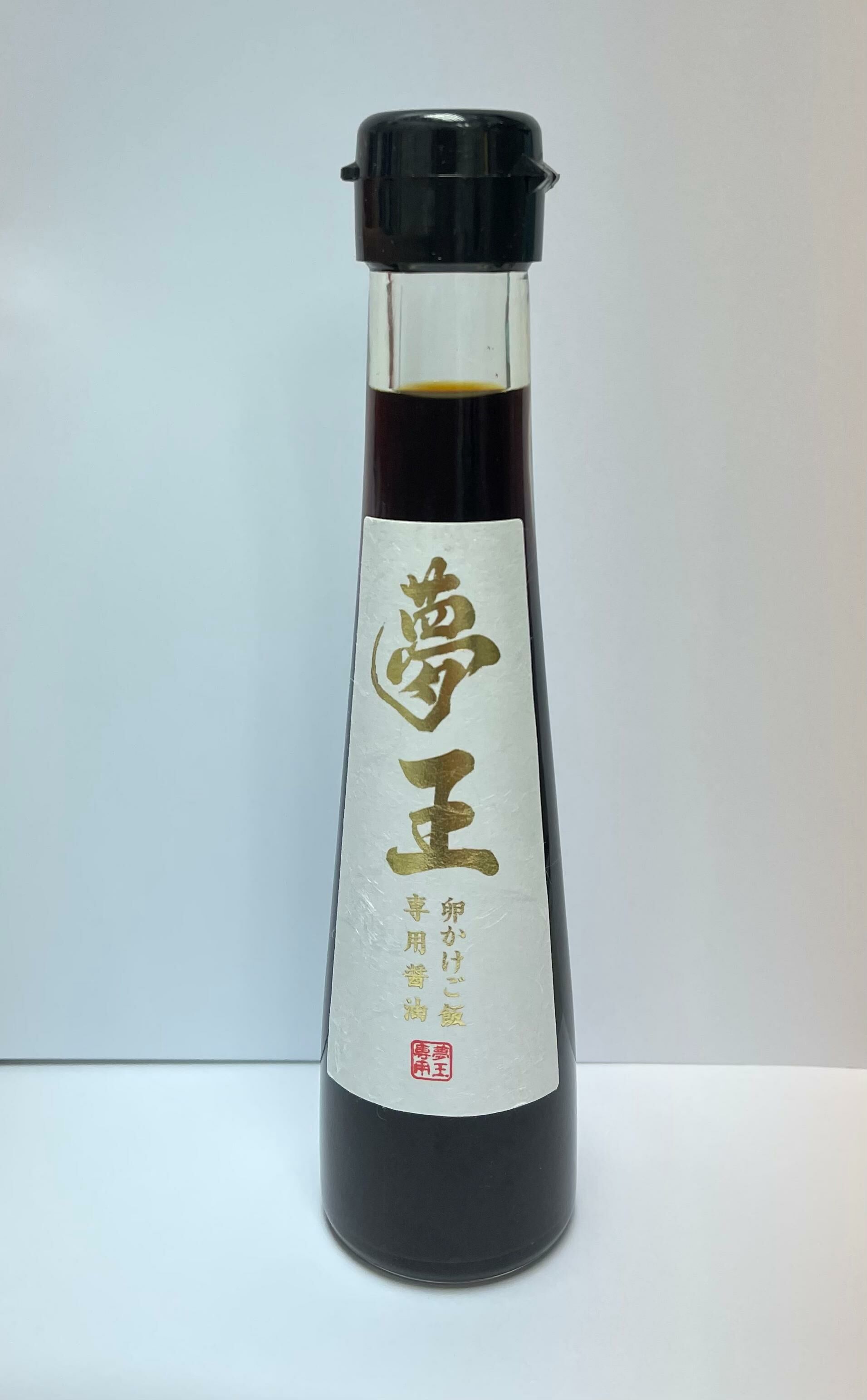 「夢王」専用拌飯醬油這是兵庫県出產的夢王雞蛋專用的醬油採用了兵庫県有機全粒大豆, 以二段熟成技術釀造。再加上北海道產的甜菜糖及味醂,經過長時間的發酵後,再加入了日本產的炭烤鰹魚碎, 北海道產的利尻昆布及天然魚汁浸製此外, 為帶出醬油鮮味, 特別地加入了兵庫縣產的紅酒。夢王専用醬油材料包括有: 本醸造醤油・ 甜菜糖・味醂・鰹魚碎・昆布汁・紅酒除了可以用作拌飯外,還可以用在其它料理上。製作茶碗蒸時,加入幾滴醬油, 更能帶出料理鮮味。$58/支