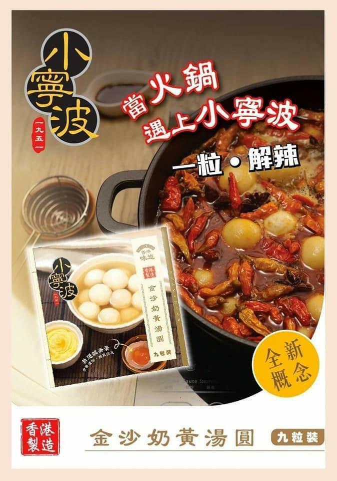 小寧波金沙奶黃湯圓有無諗過湯圓除咗可以煮糖水,都可以打邊爐?小寧波湯圓以一個全新概念,將湯圓同火鍋結合!給你一個前所未有嘅味覺挑戰😝😝😝😝👉百分百香港製造!👉不添加防腐劑👉選用植物油😉😉😉😉😉😉香濃絲滑奶黃注入金香鹹蛋黃,配上小寧波獨有嘅煙韌湯圓皮,每一口都非常滿足😝😝