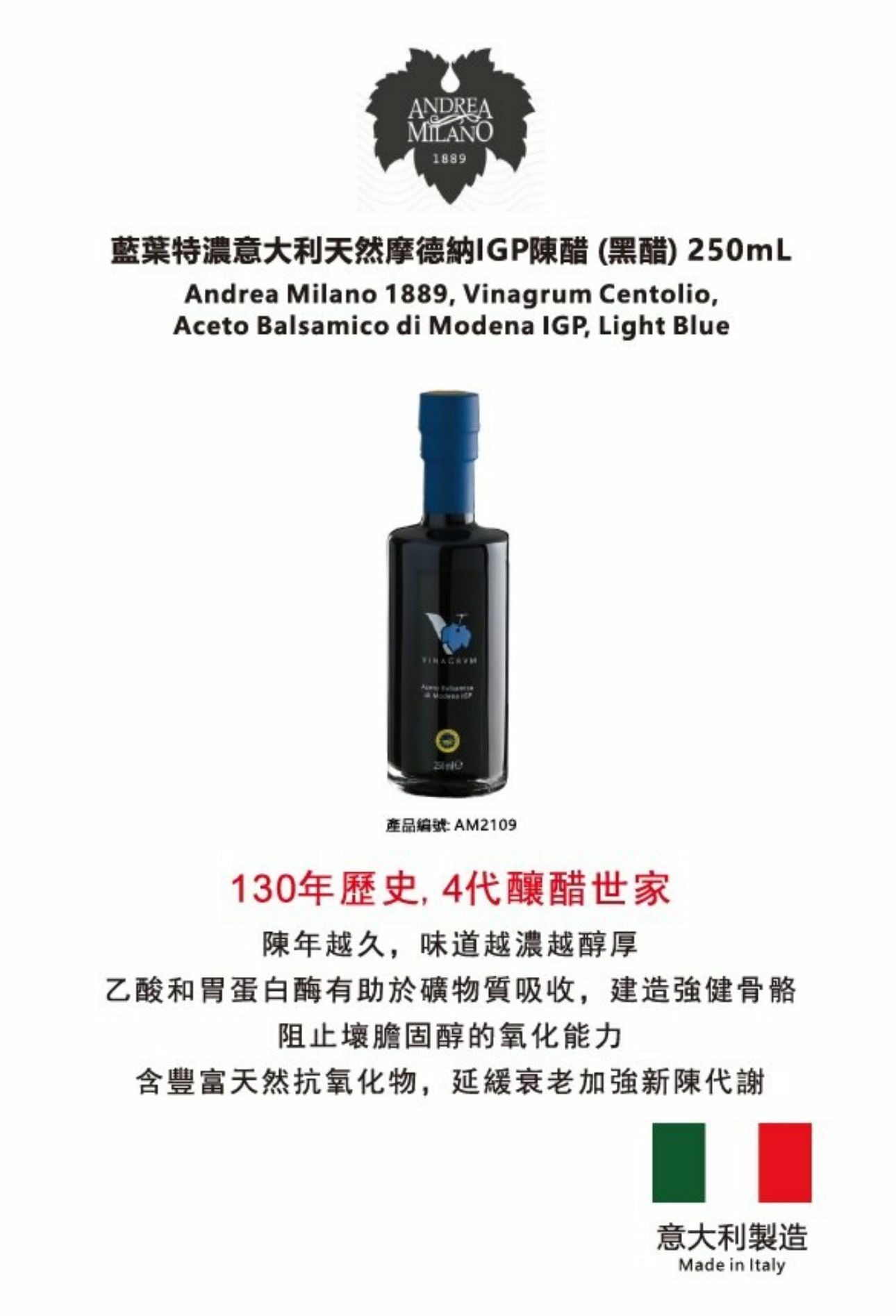 規格:250ml 產地:意大利