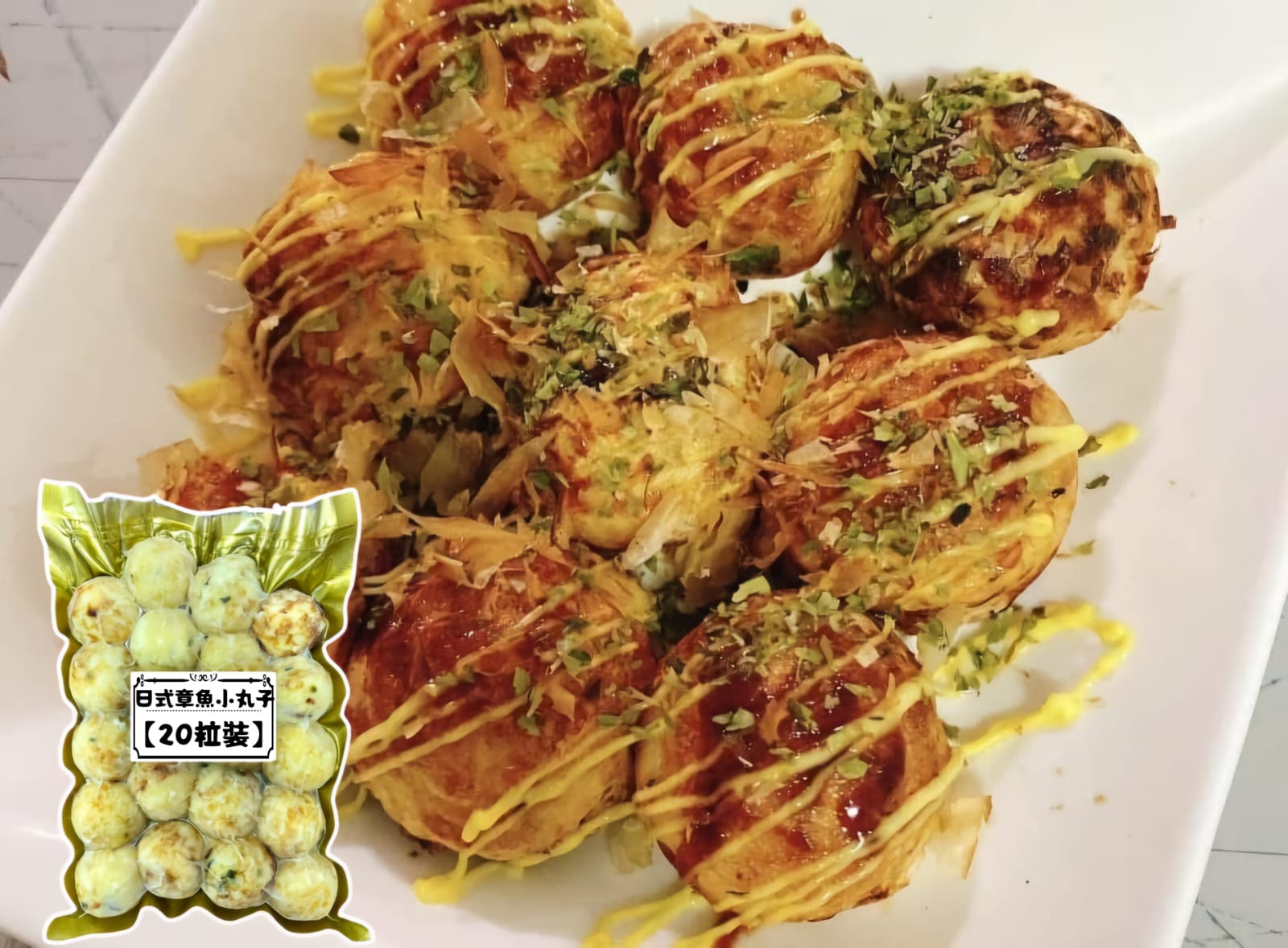 章魚燒,起源於日本大阪,原名“タコ焼き(蛸焼)” ,又名章魚小丸子,成份主要是章魚、章魚燒粉、柴魚片、海苔、沙拉醬、章魚燒醬等。章魚小丸子皮酥肉嫩、味美價廉之特點,是日本家喻戶曉的國粹小吃。 後來,章魚小丸子在東南亞各地區流行起來,成為各地區的新興食品之一。用油半煎炸及氣炸鍋亦可,口感一流,外脆內軟,小吃之選再加上照燒汁及沙律醬效果一流。