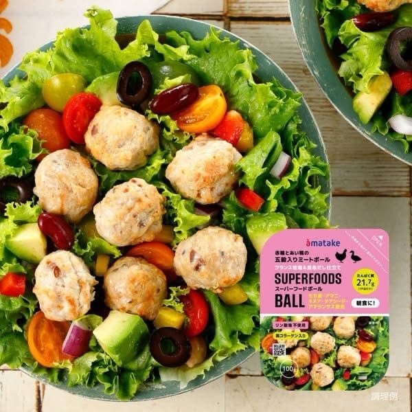 Amatake Superfoods 五穀雞鴨肉丸 岩手県飼養嘅赤鶏+合鴨肉製成,含有雞肉膠原蛋白的肉丸。含有五種穀物:糯性大麥、亞麻籽、藜麥、奇亞籽和莧菜,由法國岩鹽和海帶湯製成。不含磷酸鹽。一包提供 21.7 克蛋白質。它富含優質蛋白質,味道溫和,適合配搭唔同的 早/午/晚餐