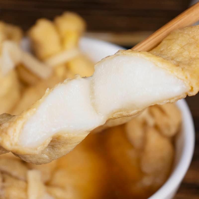 以油揚包住年糕,經過湯底滾煮後,吸滿湯汁嘅油揚,配上煙煙韌韌的年糕,非常好吃!