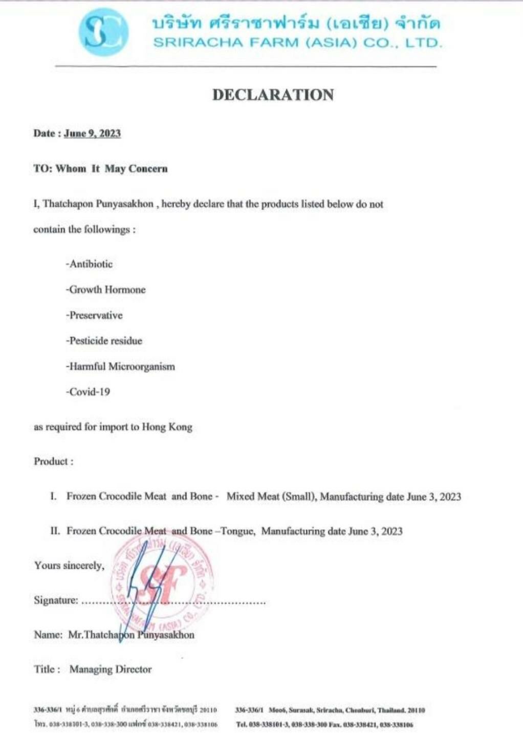 泰國無添加激素, 抗生素泰皇鱷系列:不含激素及抗生素。百份百原裝泰國入口