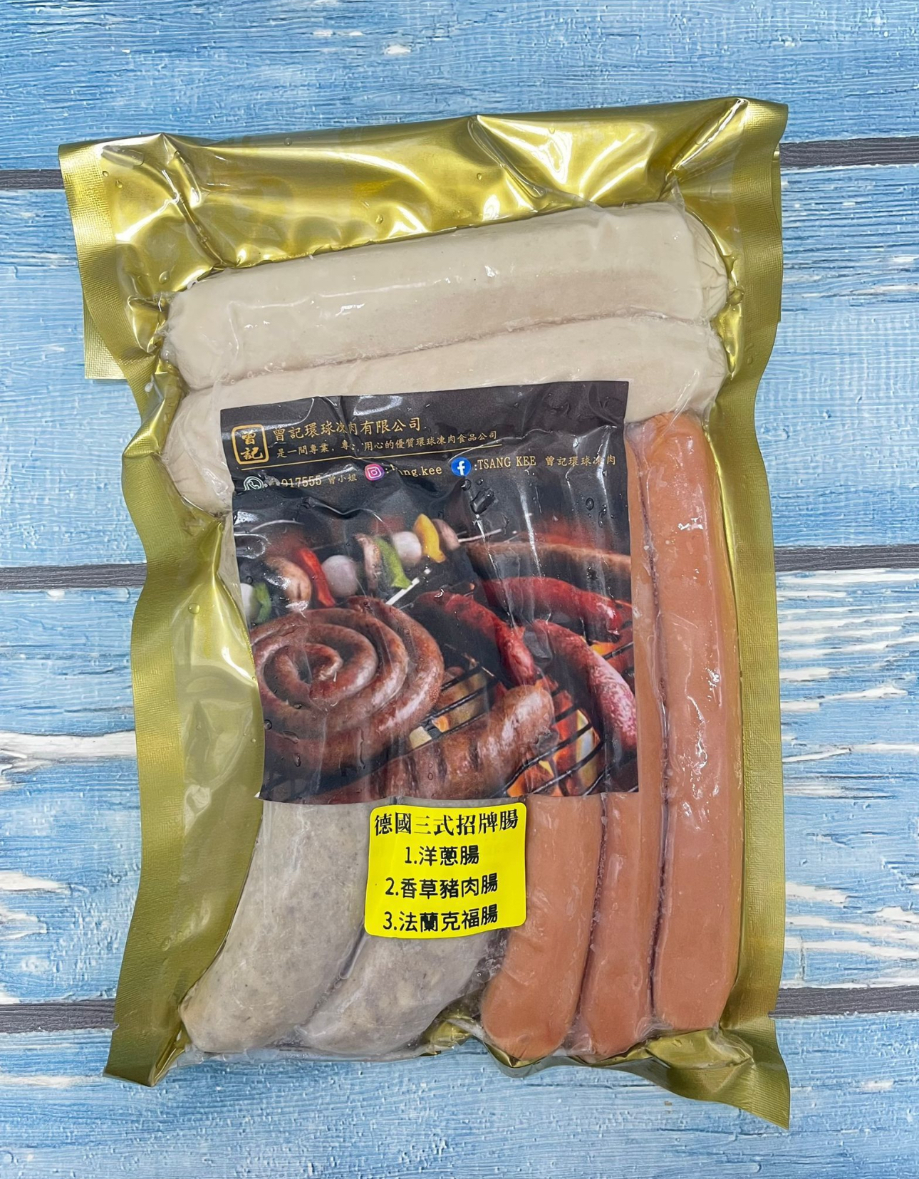 😉德國三式招牌腸 洋蔥腸 80g*2 法蘭克福腸 60g*3 香草豬肉腸100g*2 德國三式腸 直布羅陀豬肉腸 (羊腸衣) 30g*5 直布羅陀牛肉腸 (羊腸衣) 35g*5 煙維亞納蛇腸130g*1 煙燻蜜糖腸 規格:12條