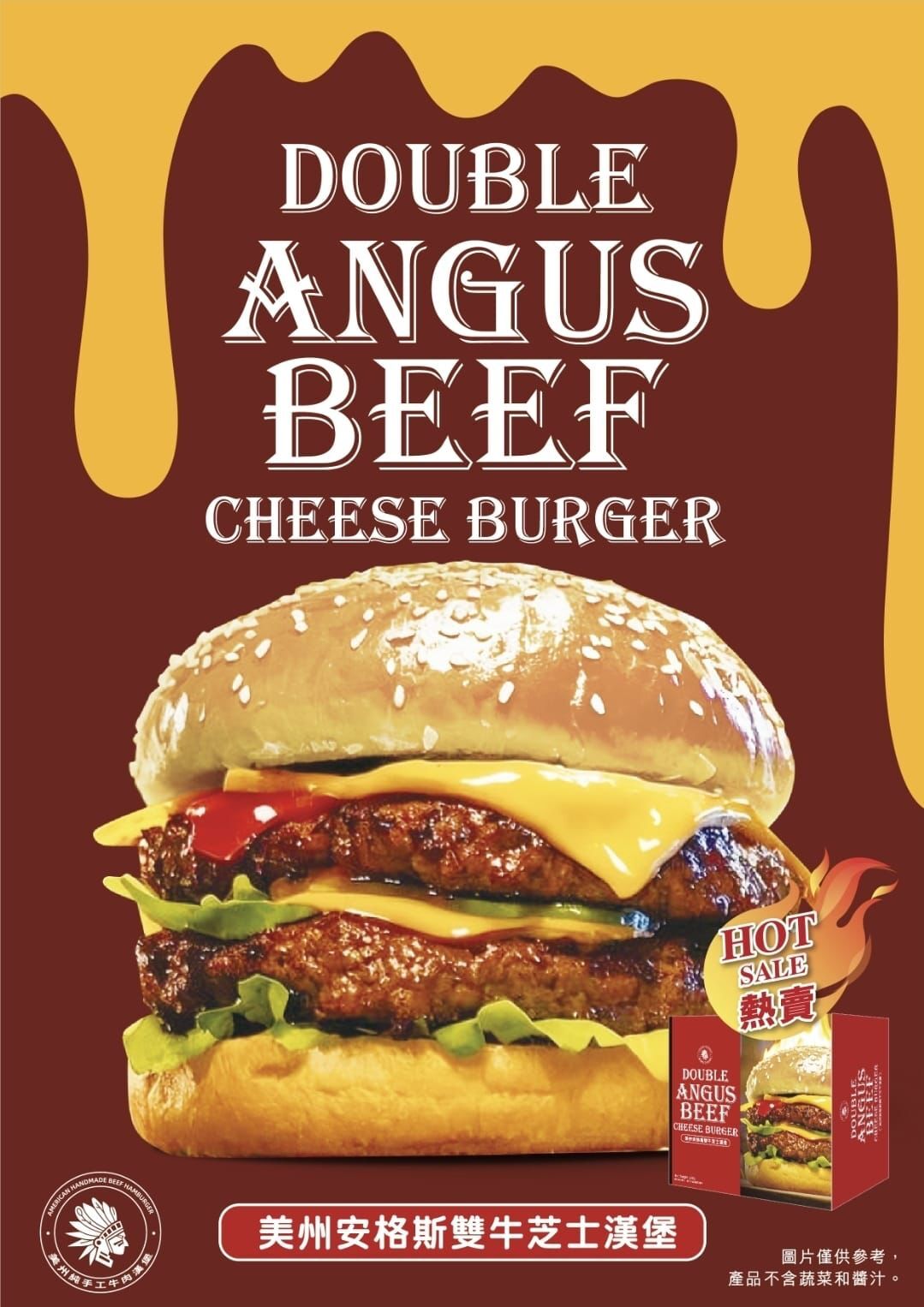 源自破千間分店的漢堡專門店• 重量級雙牛滋味,約4兩(150克)安格斯牛肉餅(2塊)• 嚴選安格斯牛肉,肉質厚實多汁• 鬆軟麵包塗上牛油及加上濃郁車打芝士片,完美複刻美式經典漢堡• 麵包表面灑上清香芝麻,餘韻無窮• 微波爐/氣炸鍋/焗爐加熱即食,助你輕鬆掌控廚房