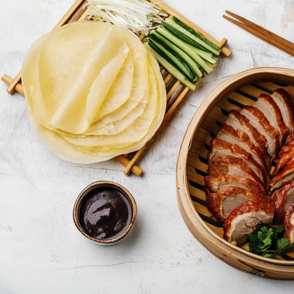一款百搭的食材,它可以捲多種不同的材料,如黃瓜,蔬菜及烤鴨等,給你不一樣的味覺體驗。食用方法: 1. 微波爐:不須解凍,將鴨餅皮放入微波爐約10秒後,加入不同的配料,即可食用。2. 蒸: 不須解凍,將鴨餅皮放置鍋中,蒸10-15分鐘即可,加入不同的配料,即可食用。