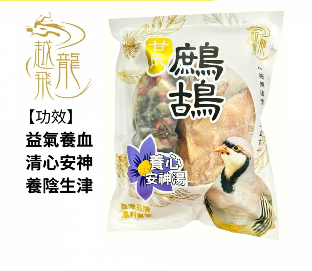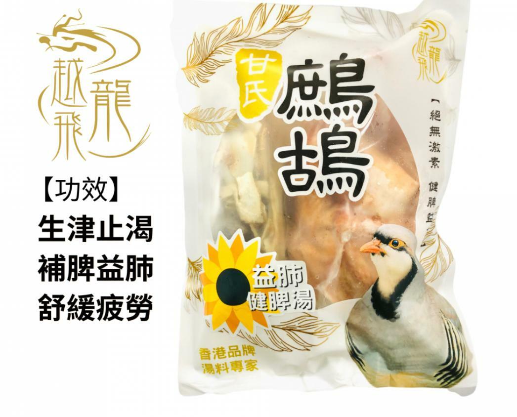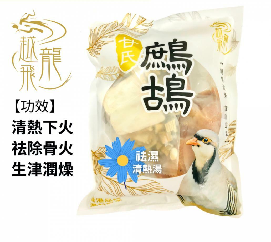 祛濕清熱鷓鴣湯清熱下火|祛除骨火1生津潤燥選用金牌120日鷓鴣,煲湯夠味又有肉食。絕無激素及抗生素,嚴格控制鷓鴣的生長條件。湯品非神藥,不會一次見效,需要耐心持續食用才能達致最佳效果。(一包有齊:原隻120日鷓鴣+乾湯料)益肺健脾鷓鴣湯生津止渴丨補脾益肺|舒緩疲勞選用金牌120日鷓鴣,煲湯夠味又有肉食。絕無激素及抗生素,嚴格控制鷓鴣的生長條件。湯品非神藥,不會一次見效,需要耐心持續食用才能達致最佳效果。(一包有齊:金牌120日鷓鴣+乾湯料)