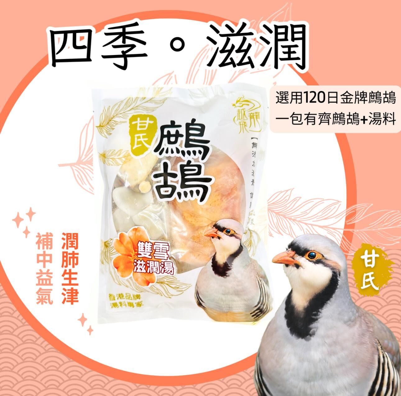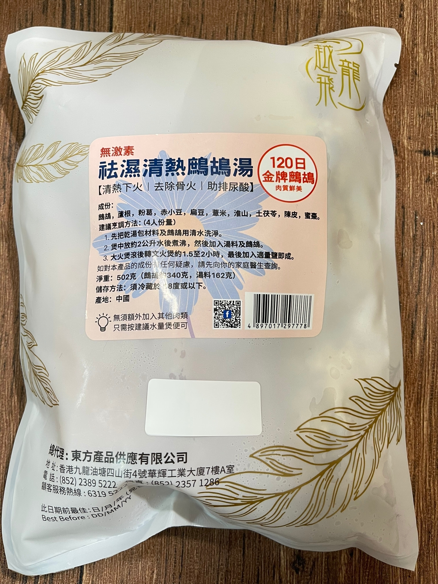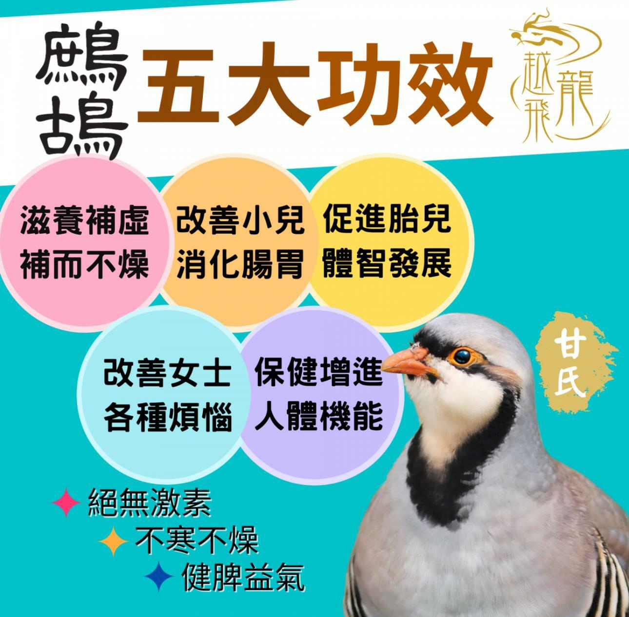 祛濕清熱鷓鴣湯清熱下火|祛除骨火1生津潤燥選用金牌120日鷓鴣,煲湯夠味又有肉食。絕無激素及抗生素,嚴格控制鷓鴣的生長條件。湯品非神藥,不會一次見效,需要耐心持續食用才能達致最佳效果。(一包有齊:原隻120日鷓鴣+乾湯料)益肺健脾鷓鴣湯生津止渴丨補脾益肺|舒緩疲勞選用金牌120日鷓鴣,煲湯夠味又有肉食。絕無激素及抗生素,嚴格控制鷓鴣的生長條件。湯品非神藥,不會一次見效,需要耐心持續食用才能達致最佳效果。(一包有齊:金牌120日鷓鴣+乾湯料)