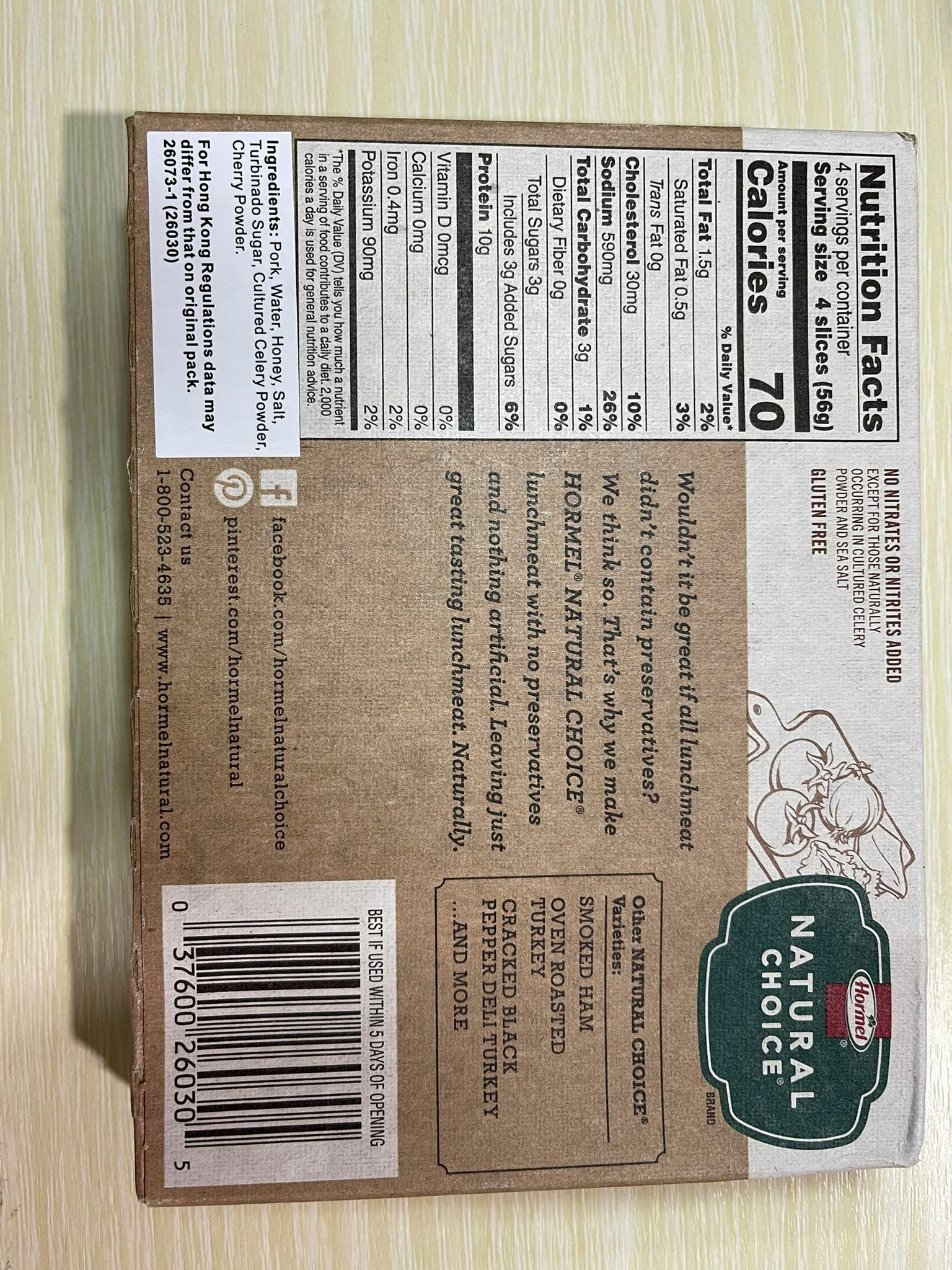 我們用甜蜂蜜煮了經典的火腿,以獲得其標誌性的甜味和鹹味。 用HORMEL® NATURAL CHOICE® 100%天然(最少加工,不含人工成分)熟食肉製作美味的三明治、包裝或零食。 使用HORMEL® NATURAL CHOICE®午餐肉在您最喜歡的沙拉中新增蛋白質,或者在餅乾上搭配乳酪,作為下午的零食。 HORMEL® NATURAL CHOICE®切片蜂蜜熟食火腿裝在一個方便的可重複密封的包裝中,以保持新鮮度。