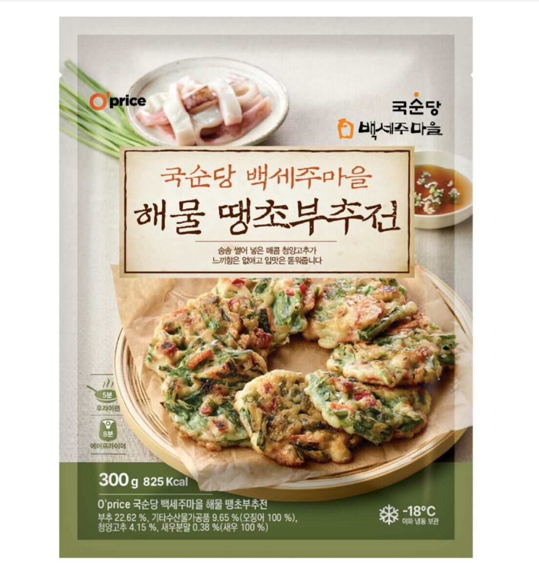 O'price魷魚泡菜煎餅酸辣開胃的泡菜加上魷魚,口感非常豐富!O'price海鮮韭菜煎餅:加入青陽辣椒,消除油膩感,更加增添食慾!正宗韓國風味,韓國國民小食,韓國人下雨天必食的煎餅,再配上米酒,別有一番風味!煮食方法:1. 用平底鍋以細火煎4-5分鐘2. 以180度氣炸約6-8分鐘3.用焗爐以180度焗8-10分鐘