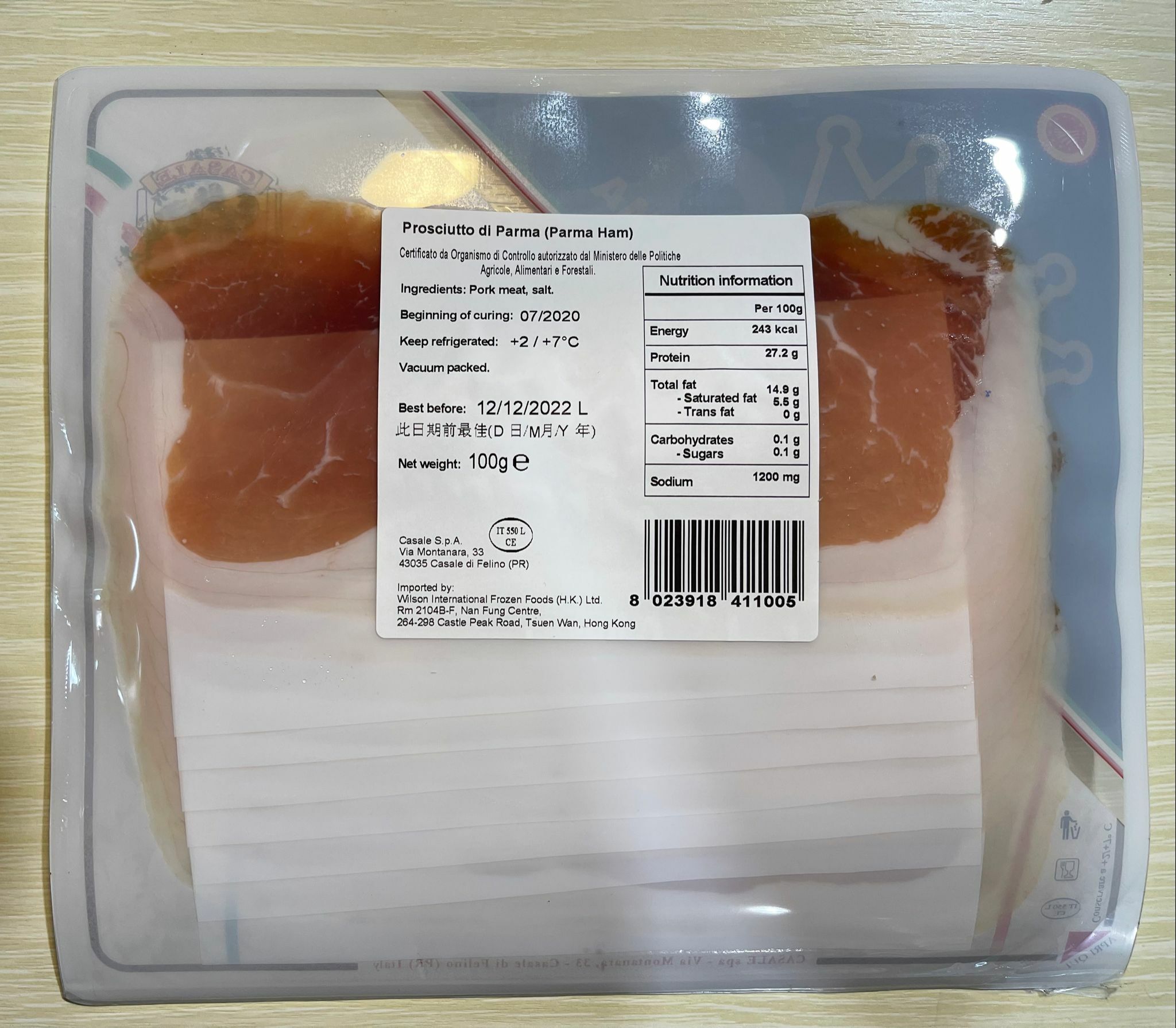 100%純種黑豚風乾火腿片,肉質鮮嫩,油花細緻,色澤及味道極其吸引,風乾20-24個月用來製作火腿,更是滋味無比!意大利風乾火腿橡果的飼料比率極高,除了完美的油脂比例,誘人的甘芳口感外,淡淡的橡果香氣更是令人欲罷不能。由意大利首屈一指品牌Casale負責,從基因研發,農場設置,飼料生產,屠宰,醃製,風乾及運輸,全面控制品質。意大利直送 正宗風味即食,做沙律,三文治,吐司,PIZZA,蜜瓜,意粉,都美味