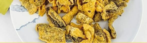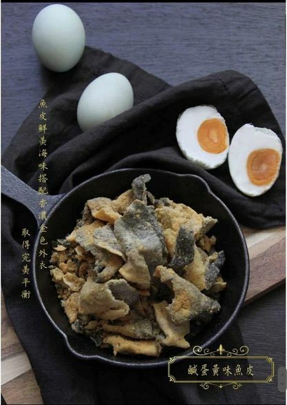 特選新鮮魚皮與獨門秘方的鹹蛋黃製作而成一咬下去,酥脆口感再加上鹹蛋黃的香氣,越嚼越香!